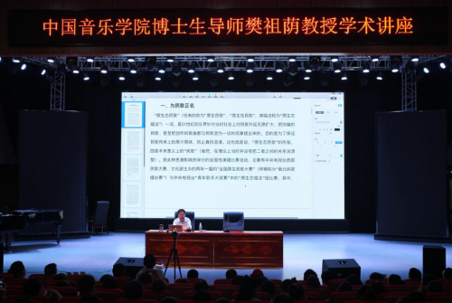随后,樊祖荫教授在演艺厅作了题为“民歌的当代传承与创新”的学术讲座,讲座围绕“民歌的界定”“民歌的传承与传播”“民歌的发展与创新”等三个方面展开。他以内蒙古“安达”组合为例,提出对于传统音乐的继承与创新要有扎实的专业技巧和丰富的艺术表现力,要在继承传统的基础上创新。