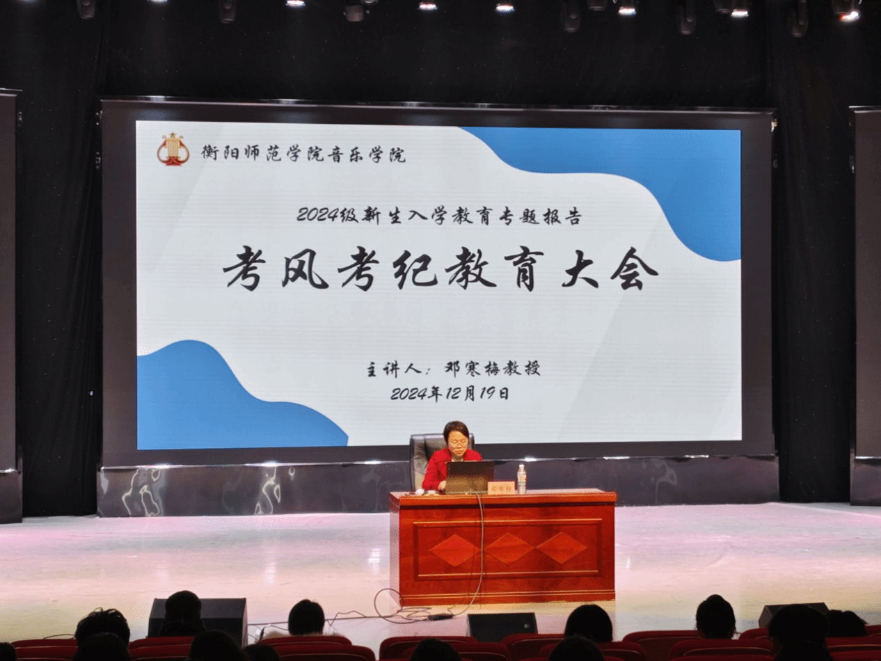 为端正校园考风考纪,强化员工规则意识,公司于12月19日18:30在衡阳师范公司东校区演艺厅组织召开公海gh555000aa线路检测新生考风考纪教育大会。本次讲座由党总支副书记邓寒梅主讲,学工办主任兼团委书记吴瑶瑶、辅导员蒋思源、唐世芳老师出席,公司全体2024 级新生聆听。