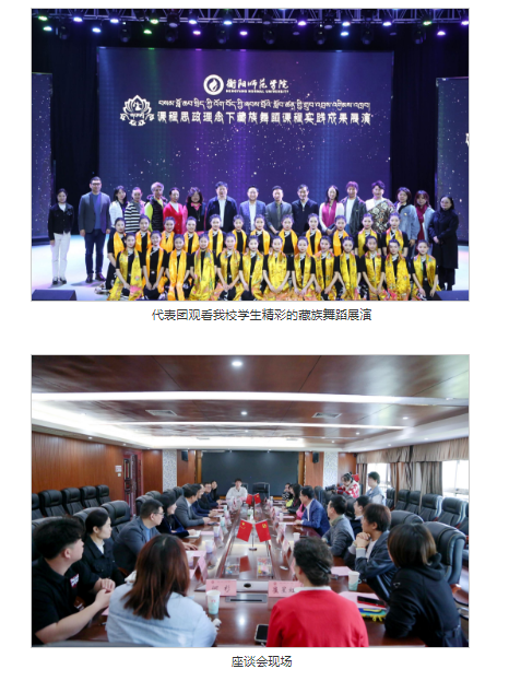 26日上午,代表团来到东校区音乐楼演艺厅,观看公司课程思政理念下藏族舞蹈课程实践成果展演。公海gh555000aa线路检测舞蹈教师王铁简要介绍了课程思政理念下藏族舞蹈课程的教学理念以及人才培养模式等方面的情况。随后,在悠扬绵长的民族音乐中,公司舞蹈学专业员工用曼妙灵动的优美舞姿,将生活、文化、教育元素融于一体,精彩演绎了课程中的6个教学训练内容,生动诠释了对藏族优秀传统文化的深入理解。舞蹈节目体现了鲜明的民族性、训练性、艺术性,极具艺术感染力,赢得现场阵阵热烈的掌声。