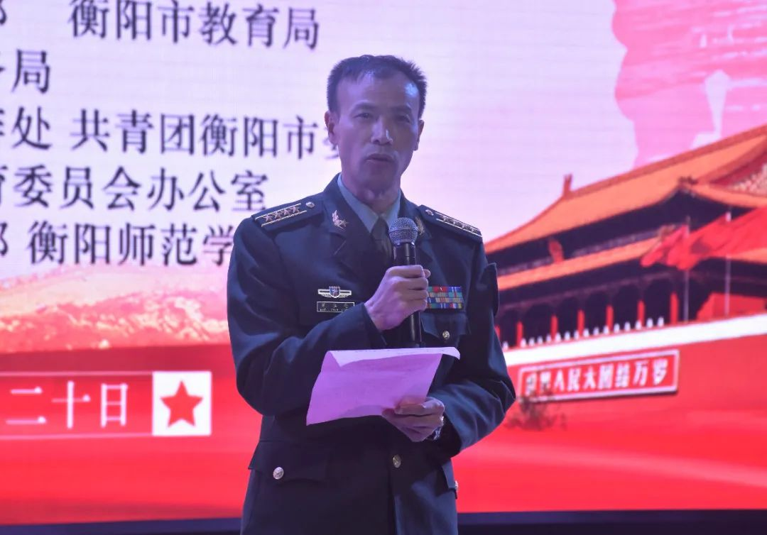 比赛开始前,衡阳警备区副司令员,衡阳市全民国防教育委员会副主任罗春亮大校上台为本次“爱我国防”主题演讲比赛致辞,罗大校的致辞激发了同学们“强国有我”的时代责任感和爱国主义精神,希望所有选手能够赛出风采,赛出友谊。
