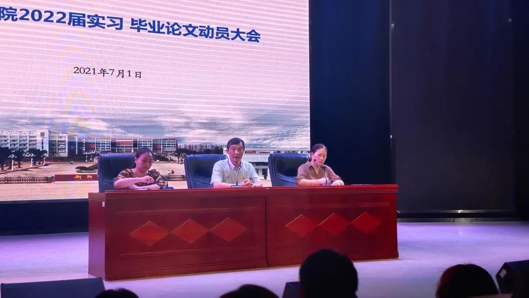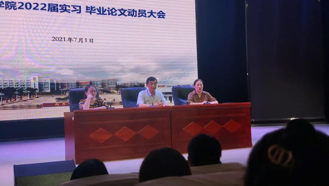 为做好下学期毕业生实习实训期间的日常管理和安全教育,以及毕业生的毕业论文指导工作,7月1日下午公海gh555000aa线路检测在音乐厅召开了2022届毕业生实习、毕业论文动员大会,会议由音乐公司党总支副书记陈雅斐主持,公海gh555000aa线路检测经理段桥生、副经理陈瑾、18级辅导员黄鹤飞及2018级全体同学参加了此次会议。