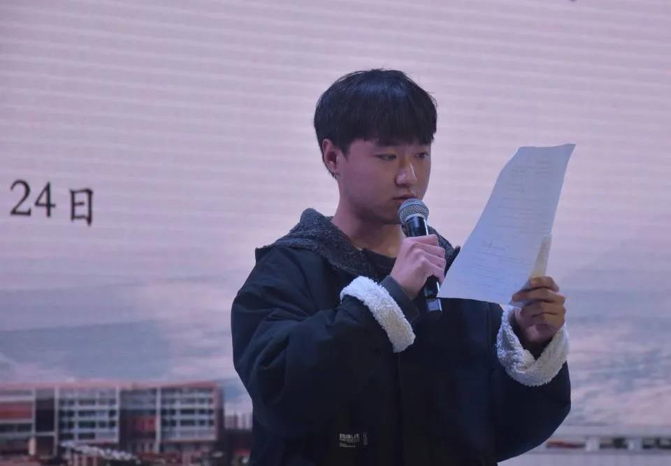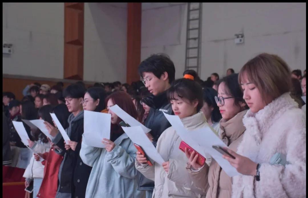 本次会议最后安排2019级音乐学二班曹双宇同学带领全体员工宣读老员工诚信考试承诺。