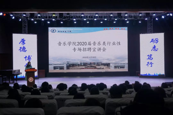 12月30日上午,2020届音乐类行业性专场招聘会在音乐楼顺利举行。来自上海、深圳、广州、浙江等地区近40家用人单位,提供就业岗位320多个。校招生与就业处处长邓双喜、副处长刘伦华、就业市场科科长刘高见、音乐公司党总支书记朱志红、经理段桥生、副书记陈雅斐到场指导工作,2020届全体毕业生参加了招聘会,2017级和2018级部分员工也到了现场观摩。