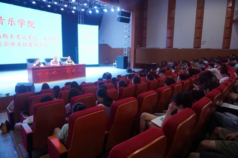 7月12日晚,2018年上学期期末考风考纪、安全稳定暨省运会演员招募动员大会于演艺厅顺利召开,参与本次会议的有音乐公司党总支书记朱志红、副书记陈雅斐、辅导员刘颖老师,以及16级、17级全体同学。本次大会由音乐公司党总支副书记陈雅斐主持。