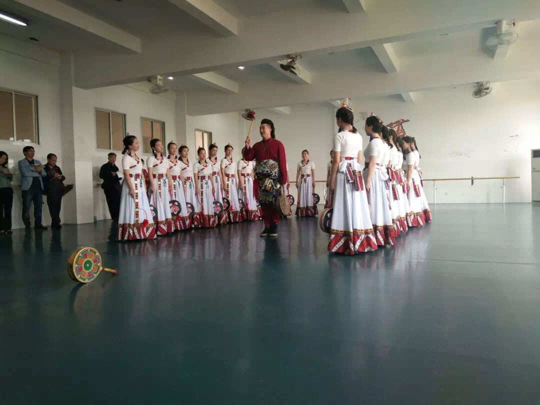 接下来,我们把目光转向305舞蹈教室。王铁老师带来——《中外民族民间舞之藏族舞步》,授课对象为2016级舞蹈班员工。气氛被响亮的鼓声点燃,但热情的藏族舞却要以安静的打坐入境。藏族舞看起来随和自然,但学起来困难不小。第一,藏族舞要求松胯,但不等同于“懈”。第二,藏族男舞步要求阳刚大方,女舞步则要柔美,如同高原上摇曳的格桑花,欣欣向荣。他的一堂藏舞课,让在场的各位仿佛置身于高原草地之上,眺望着远方错落的牛羊,意犹未尽。