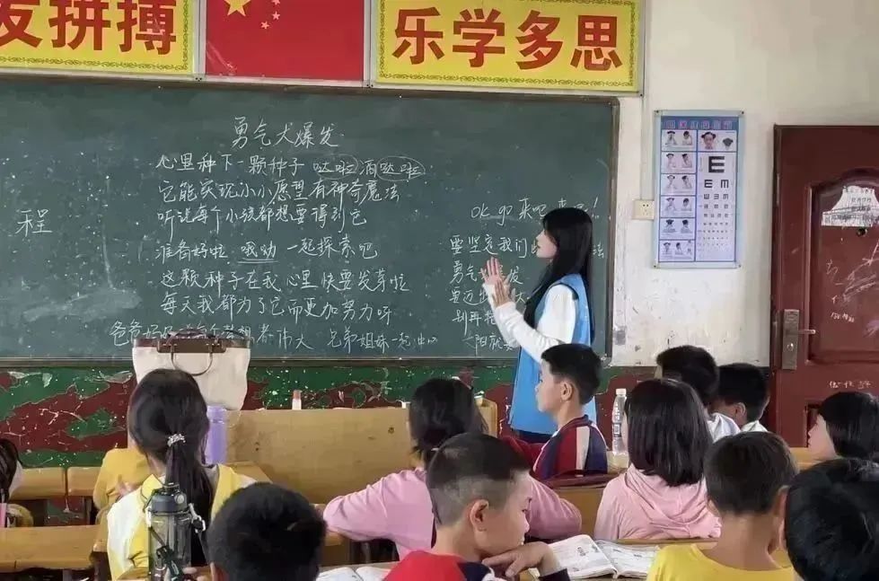 他们一起分享着自己的想法和感悟,每个人的脸上都洋溢着灿烂的笑容。此时此刻,志愿者们不仅仅是老师,也是同学们的伙伴。在这样的课堂氛围中,同学们感到非常轻松、愉快,充满了学习的动力!