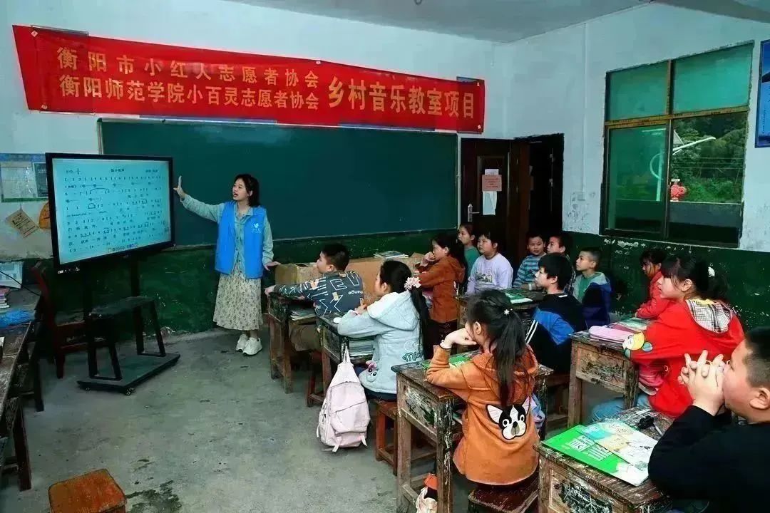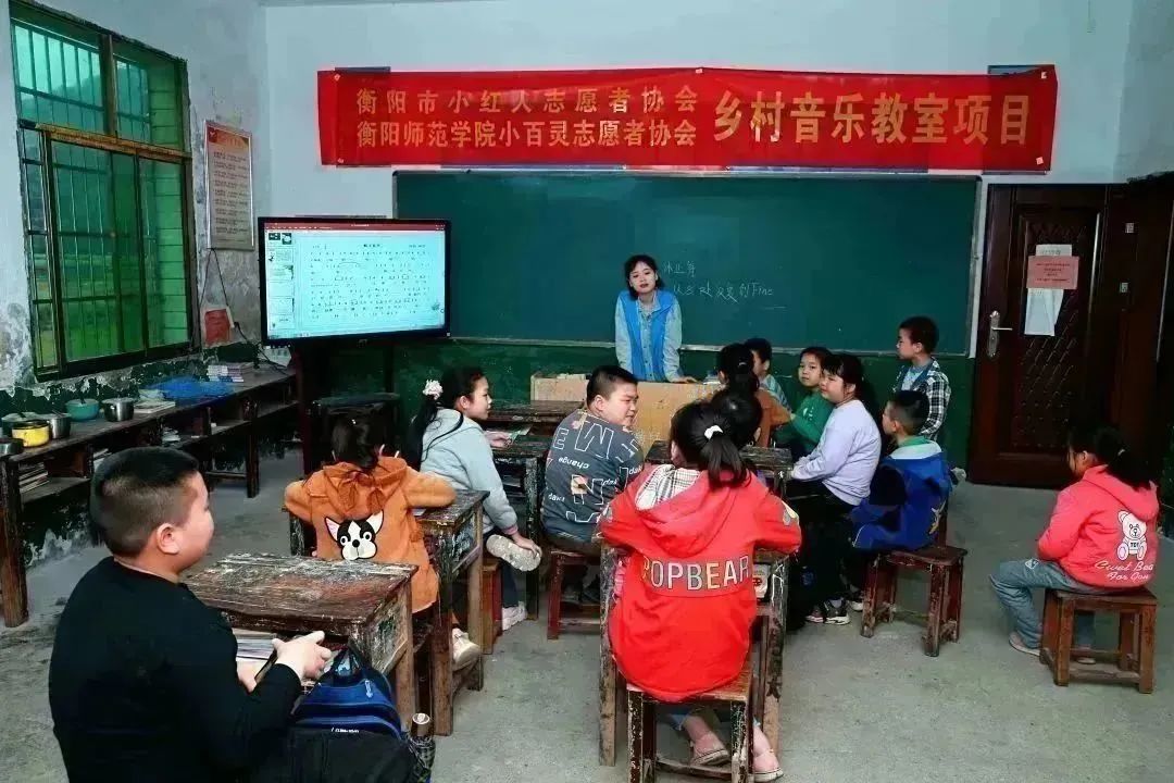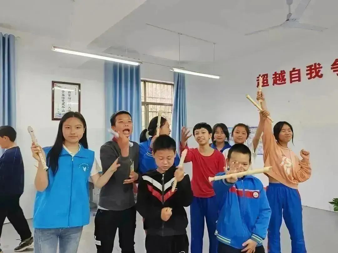 支教课堂开始啦!志愿者们带领同学们感受歌曲的律动,领略音乐的独特魅力。