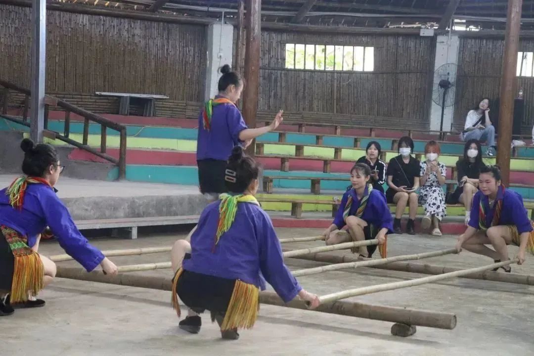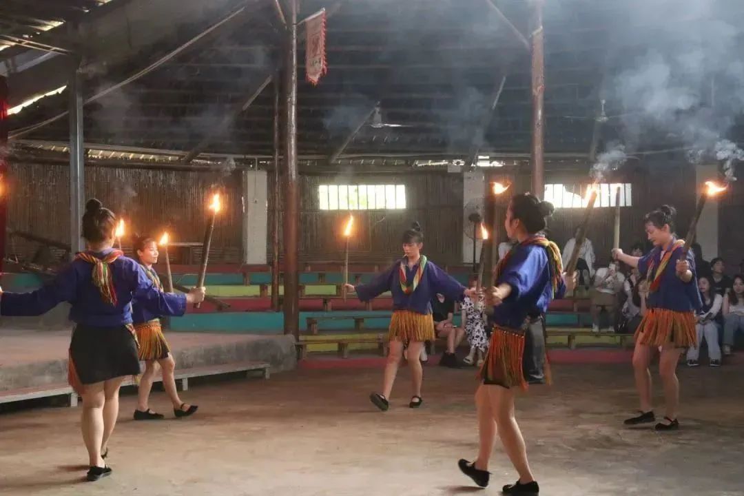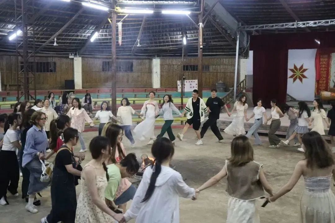 热情的瑶家姑娘跳着火把舞、竹竿舞,尽显民族特色。瑶族舞蹈文化交流结束后,公司师生也为大家带来了精彩的表演。