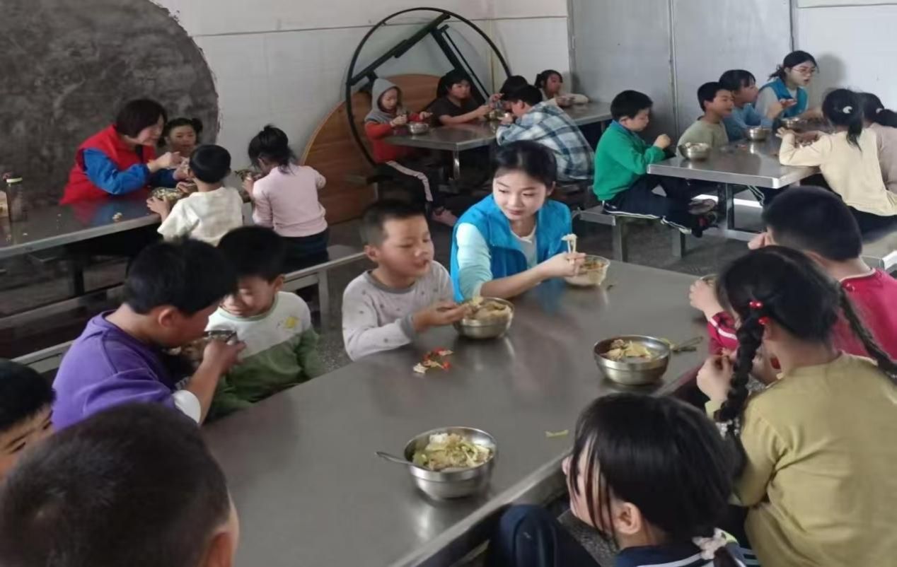 四十五分钟的音乐课堂一眨眼就过去了,志愿者们在课间时身份也从“老师”转变为“玩伴”陪着孩子们一起玩耍、与孩子们一起在食堂吃饭聊天。