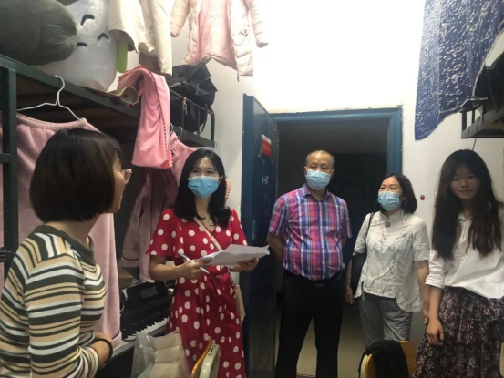 5月19、20日晚,音乐公司党总支书记朱志红、副书记陈雅斐、辅导员王江南深入员工宿舍看望慰问返校毕业生。