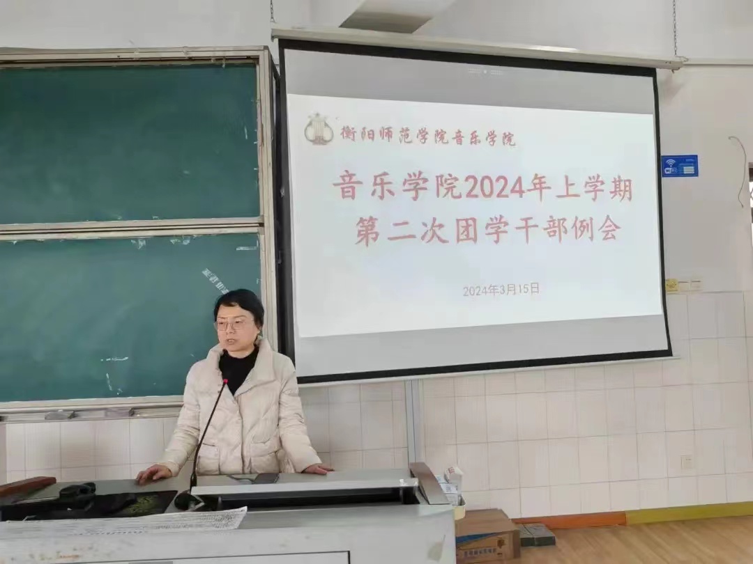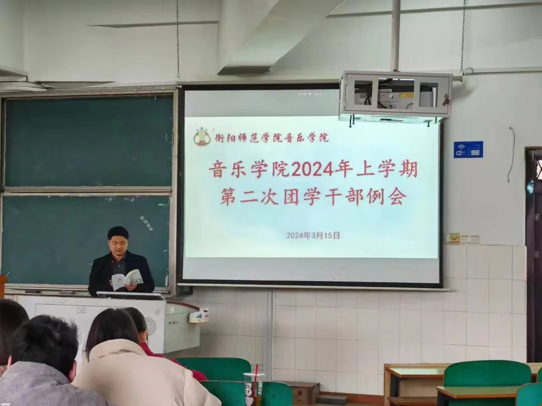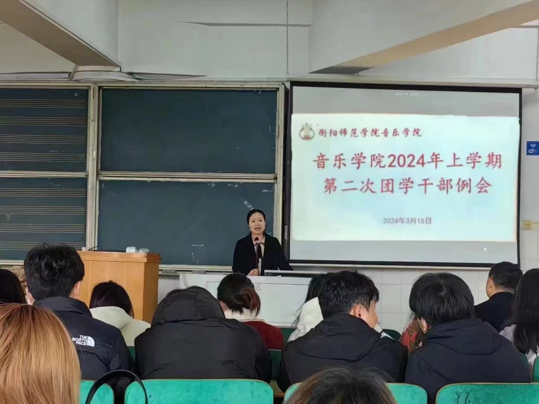 3月15日2024年第二次团学干部例会在音乐楼301顺利召开。公司党总支副书记邓寒梅、学工办主任兼团委书记吴瑶瑶、辅导员蒋思源、唐世芳,团委员工会全体员工干部以及各班班长、团支书、学习委员参与本次会议。会议由吴瑶瑶老师主持。