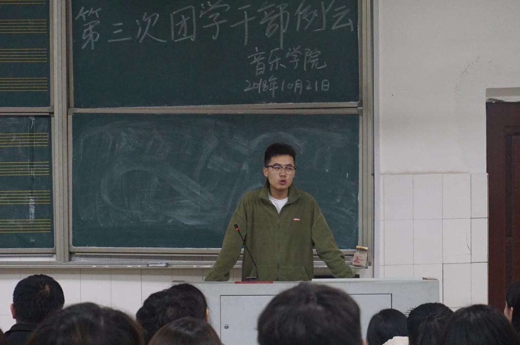 10月21日晚,2018年下学期第三次团学干部例会于音乐楼201教室顺利举行。本次会议由员工会主席周祎格主持,参加会议的有音乐公司党总支副书记陈雅斐、辅导员王江南、黄鹤飞老师,分团委员工会全体干部以及16级、17级、18级各班主要班委。