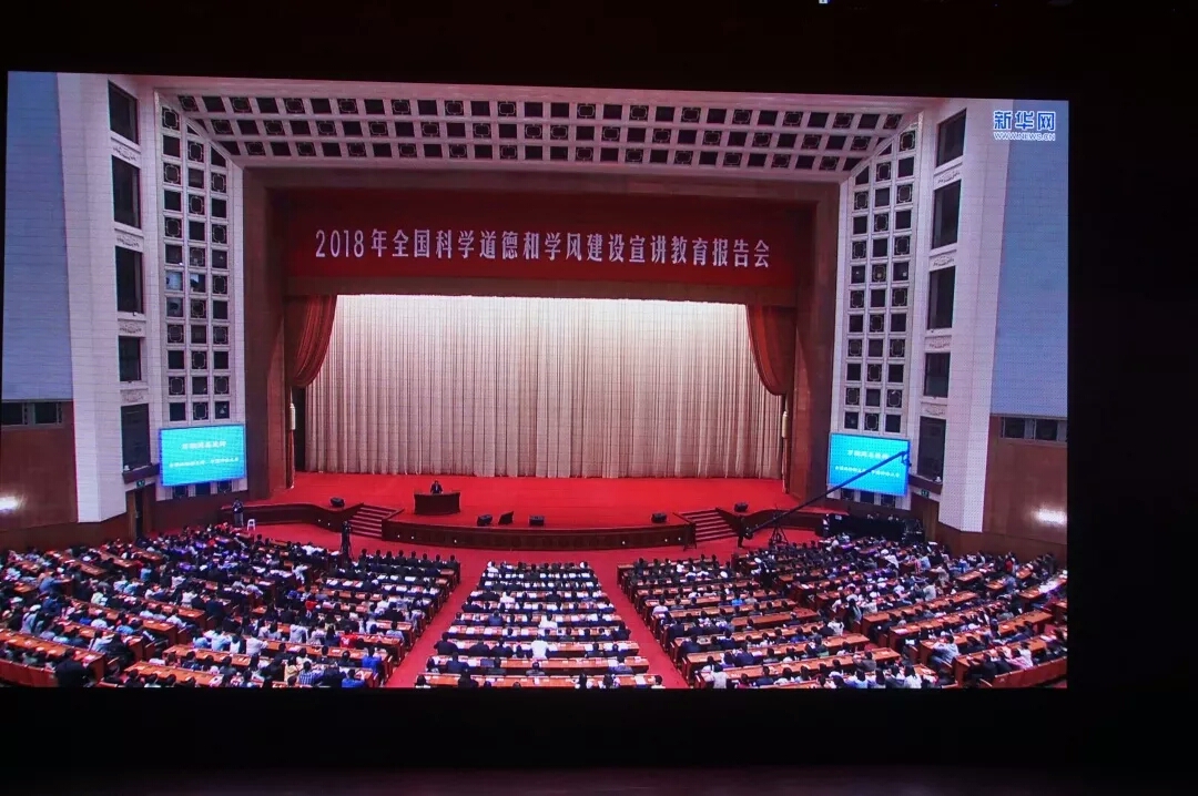 为学习贯彻习近平新时代中国特色社会主义思想、党的十九大精神、“科技三会”精神和习近平总书记关于科学道德和学风建设的重要指示精神,进一步推进科学道德和学风建设宣讲教育工作。10月15日下午,公海gh555000aa线路检测组织全体教职工和所有团学会干部在音乐厅观看了2018年全国科学道德和学风建设宣讲教育视频会。