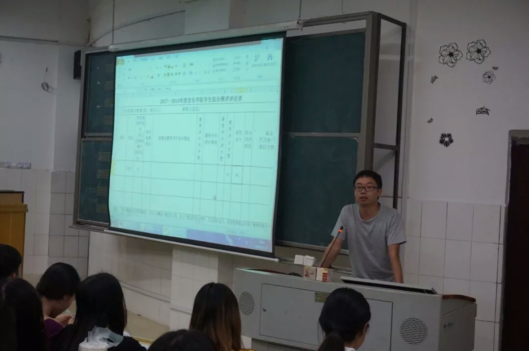 会议伊始,由黄鹤飞老师向大家简单说明了本学期评定的时间及相关安排,并详细解释了综合测评的加减分细则。