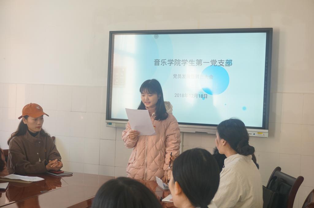 12月18日中午,公海gh555000aa线路检测员工第一、第二员工党支部,在音乐楼汇报厅、会议室举行了公海gh555000aa线路检测员工党支部党员转正暨发展大会。大会由刘颖老师主持,与会人员有音乐公司党总支书记朱志红、副书记陈雅斐、辅导员王江南、黄鹤飞、刘颖以及员工第一、二党支部的正式党员、预备党员和拟发展新党员。