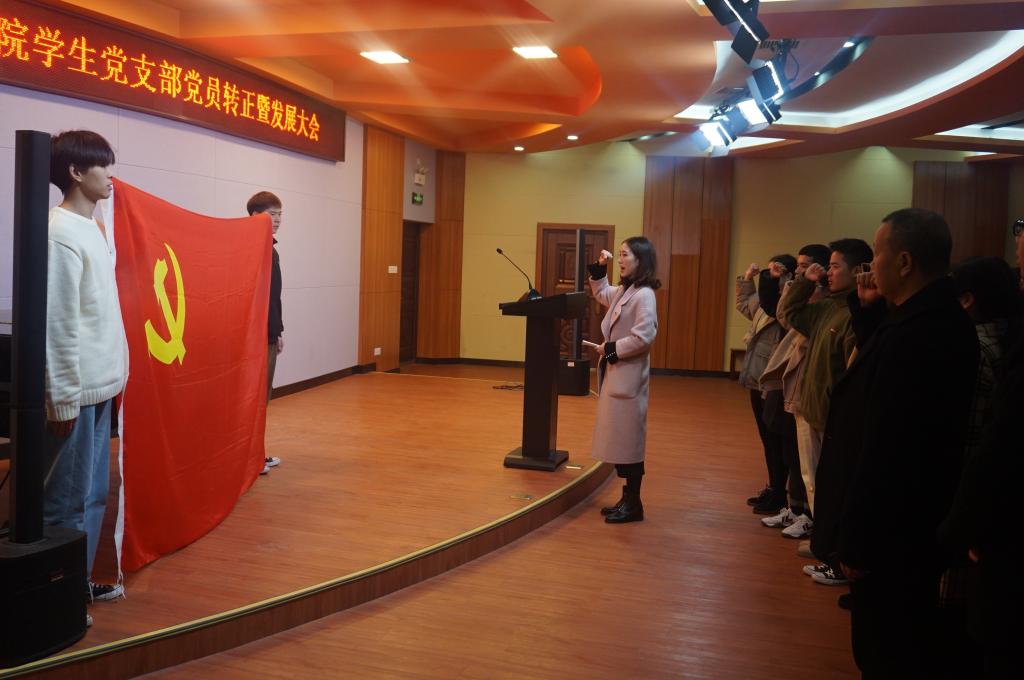 通过党支部正式党员投票表决,任权、王锦华等12名拟发展党员同志已具备成为共产党员的条件,同意发展为中共预备党员。并由音乐公司党总支副书记陈雅斐为预备党员颁发党徽。