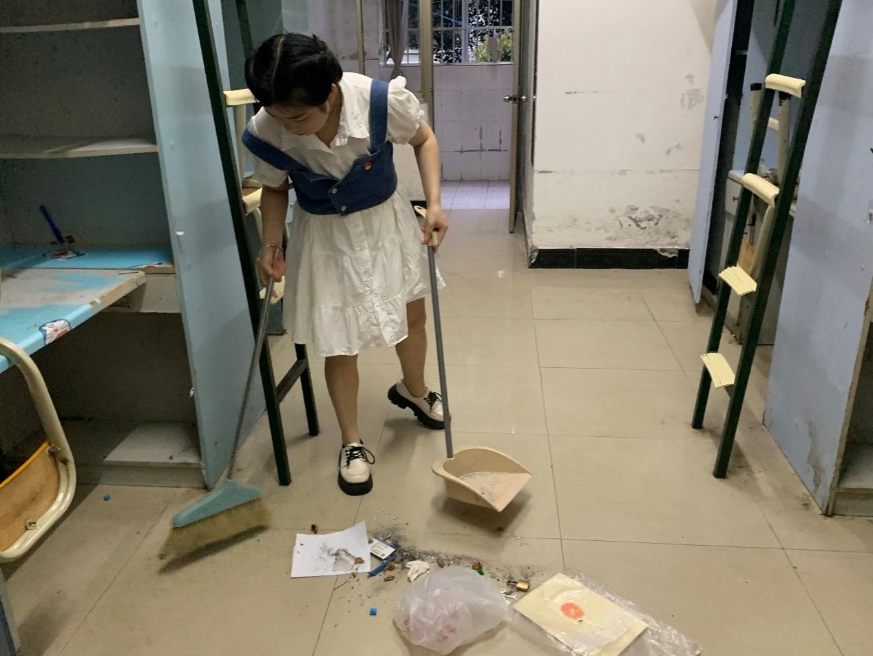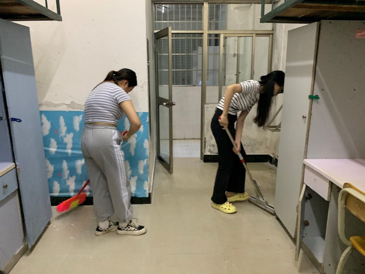 员工党员们两两分组,带着打扫工具来到自己对应的宿舍,对宿舍内的门窗桌椅,洗漱台,死角垃圾等地方进行了清理,大家相互合作,干劲十足,以劳动为荣,乐在其中,认真细致地打扫每个角落,确保卫生不留死角。