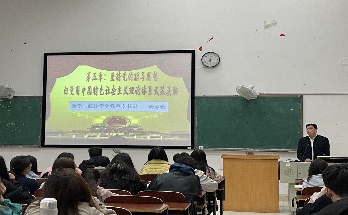 2021年10月21日晚7点30分,第64期入党积极分子班(五班)第四讲课于外语楼301教室顺利举行。本次培训由数学与统计公司党总支书记杨家骏书记主讲,主讲内容为:坚持党的指导思想,自觉用中国特色社会主义理论体系武装头脑。