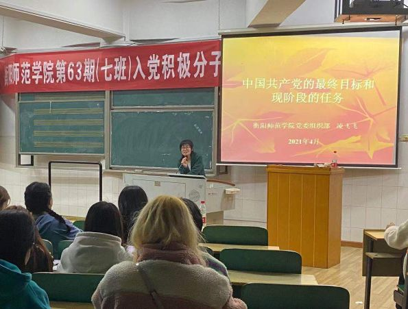 2021年4月19号晚19点30分,公司于音乐楼301教室举行了第63期入党积极分子培训第十讲--“明确党的纲领,为实现最高理想和现阶段目标”。本次培训由党委组织部副部长凌飞飞同志主讲。