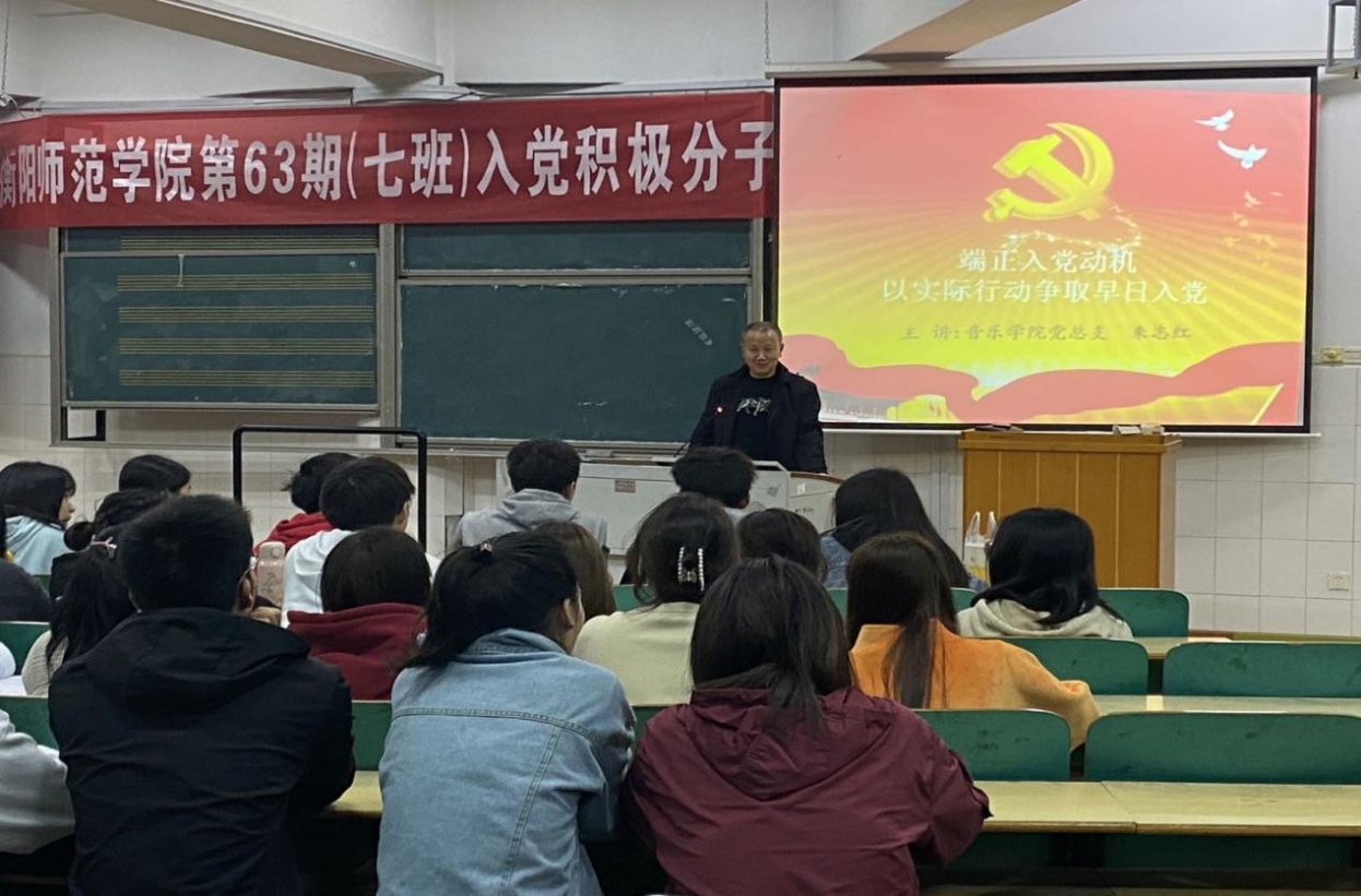 2021年4月13日晚19点30,公司于音乐楼301教室举行了第63期入党积极分子培训第六讲——“端正入党动机,以实际行动争取早日入党”。本次培训由音乐公司党总支书记朱志红同志主讲。