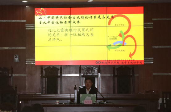 随后,杨书记分别从理论主题、理论品格、理论基点、理论目标四个方面将理论成果之间的关系一一进行了阐述,让同学们知道理论成果之间的关系:既是一脉相承又各具特色。杨书记认为,在今后理论学习生活中,同学们一切应从实际出发,敢于直面自身错误,才能超越自身的局限,永不停歇的进行理论创新。