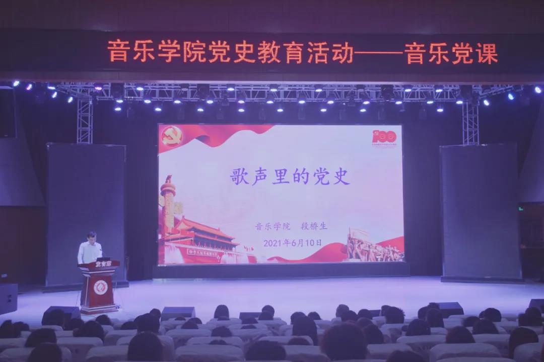 2021年6月10日晚,公海gh555000aa线路检测在公司东校区演艺厅开展“音乐党课”主题党史学习教育活动。本次党课由音乐公司党总支副书记、经理段桥生主讲,公司党委宣传部、组织部、校团委等职能部门的主要负责人亲临观摩,公海gh555000aa线路检测全体领导、员工党员和入党积极分子参与学习。
