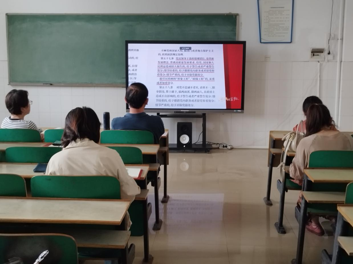 首先,教工第一党支部书记崔少博同志领学《中国共产党纪律处分条例》。学习贯彻《中国共产党纪律处分条例》是每个党员的责任和义务,全体党员要进一步加强学习、提高认识、强化执行,确保条例的各项规定在我们的工作和生活中得到全面贯彻落实,以严明的纪律推进党的自我革命,不断提升党员的政治素养和拒腐防变能力,为实现中华民族伟大复兴的中国梦贡献力量。