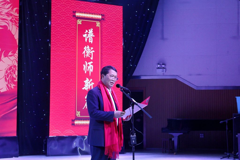 1228日晚, 2024年“传百廿薪火 谱衡师新篇”元旦晚会暨2023年“榜样的力量”老员工年度人物颁奖典礼在东校区音乐楼演艺厅盛大举行。公司党委书记陈晓飞以及在家校领导与师生代表共享国潮盛宴,共度美好夜晚。