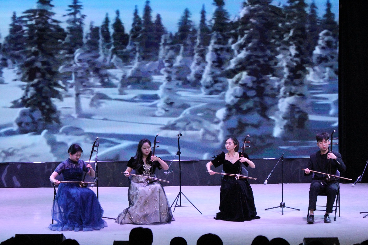 下半场在古筝重奏《柳京之舞》旋律中拉开了帷幕,不同乐章之间的划分使得演出极具层次感。民乐与西洋乐的结合更是使人身临其境,黑白跳动间音符与古筝声声呼应。