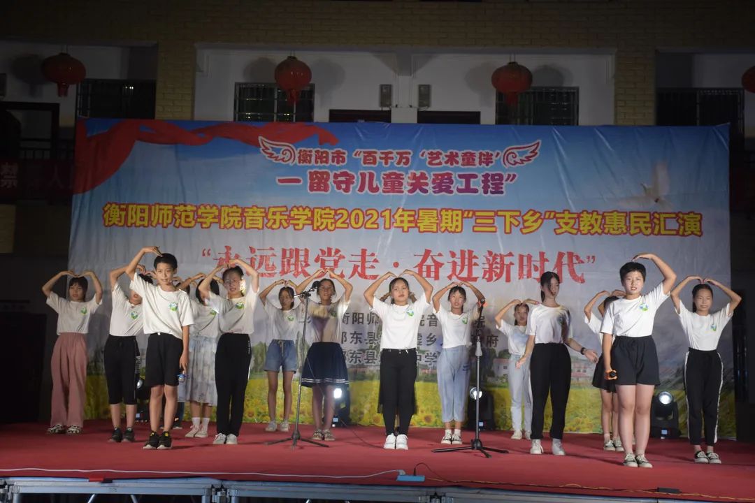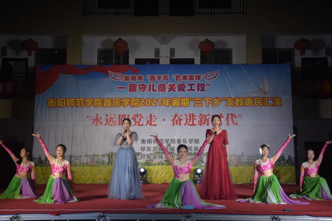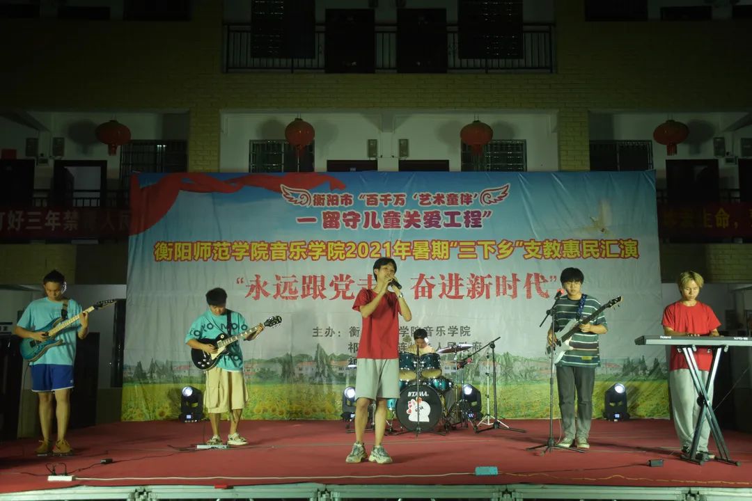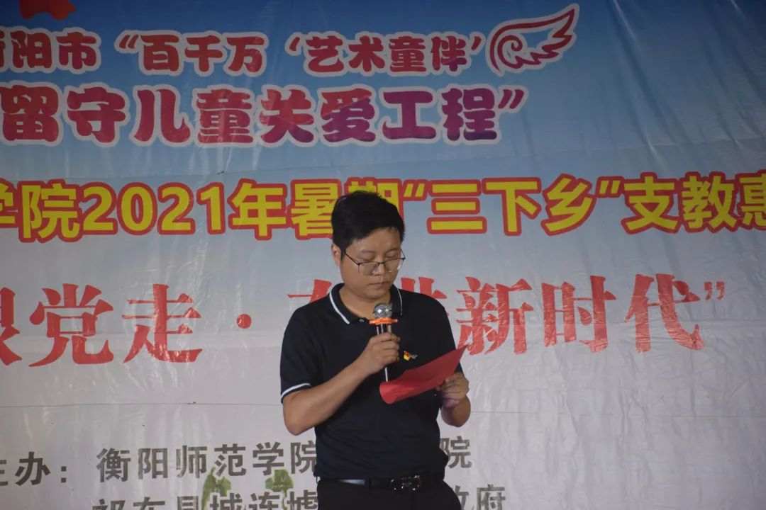 2021年7月12日晚,公海gh555000aa线路检测三下乡支教惠民汇演于城连墟乡隆重举行。莅临本场汇演的领导嘉宾有衡阳师院音乐公司党总支书记朱志红、党总支副书记陈雅斐。祁东县委宣传部一级主任科员周建桥、祁东县城连墟乡党委书记胡文波、祁东县城连墟乡乡长罗映、祁东县教育局青少年员工校外活动中心负责人周斐、祁东县城连墟乡党委副书记陈志红、祁东县城连墟乡人大主席周盛红 、祁东县城连墟乡教管办主任李仁秋。